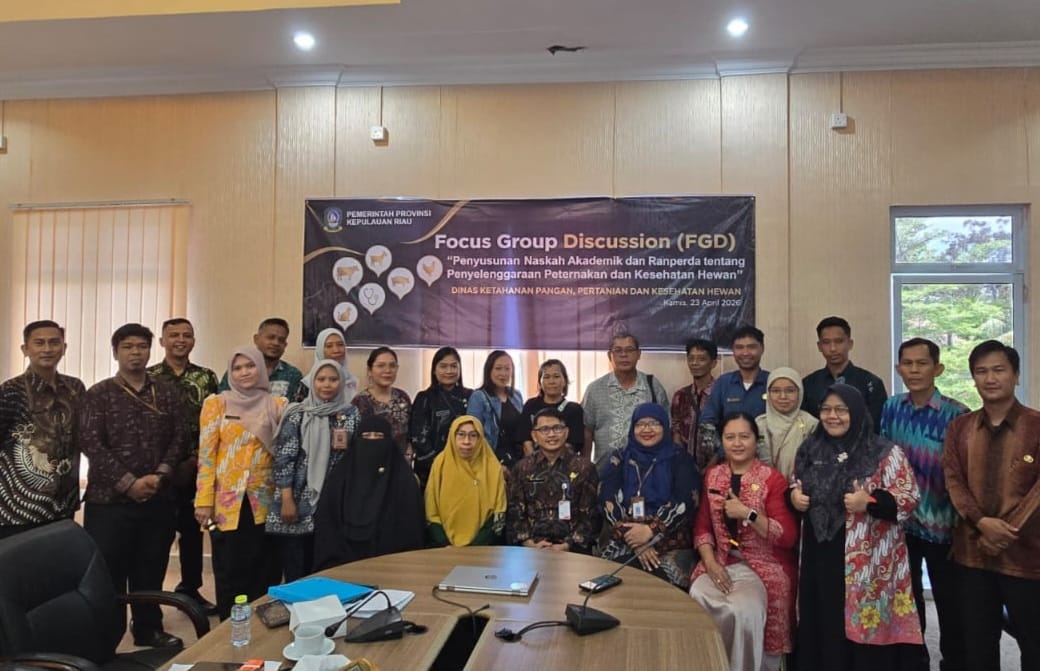 Tanjungpinang – Pemerintah Provinsi Kepulauan Riau (Kepri) mulai mematangkan langkah untuk memperkuat sektor peternakan melalui penyusunan regulasi yang komprehensif. Melalui Dinas Ketahanan Pangan, Pertanian, dan Kesehatan Hewan (DKP2KH), Pemprov Kepri menggelar Focus Group Discussion (FGD) terkait Naskah Akademik dan Rancangan Peraturan Daerah (Ranperda) Penyelenggaraan Peternakan dan Kesehatan Hewan, Kamis (23/4/2026).
